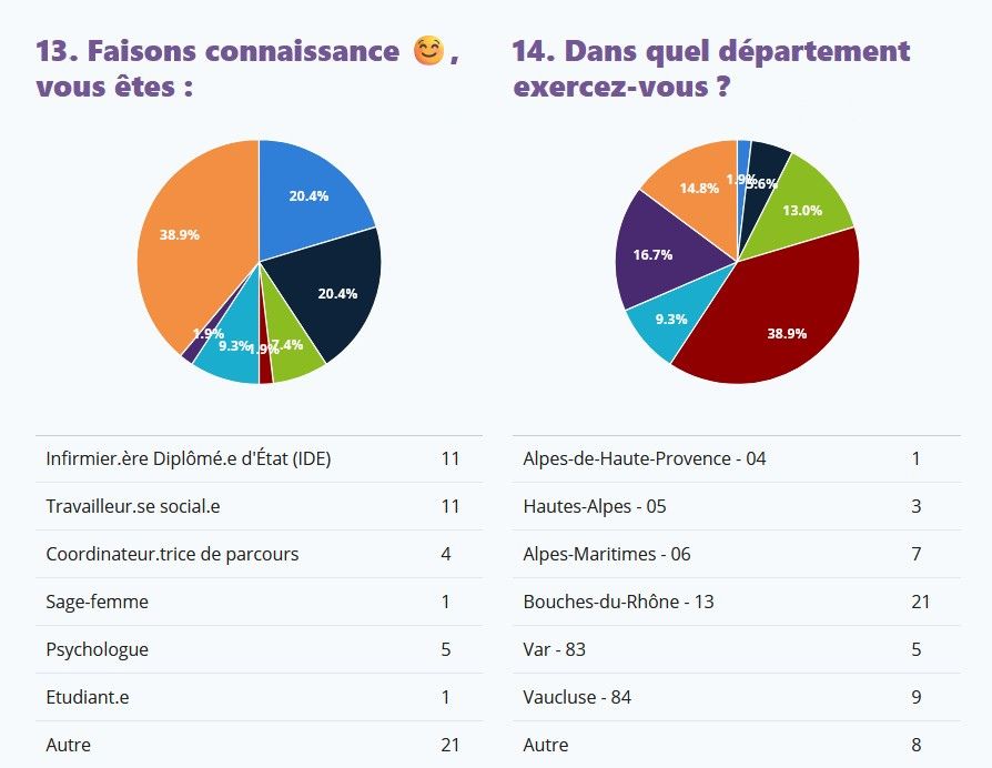 Le questionnaire était anonyme, avec la possibilité pour les répondants d’indiquer leur profession ainsi que leur territoire d’activité. L’ensemble des départements de la région PACA est représenté.