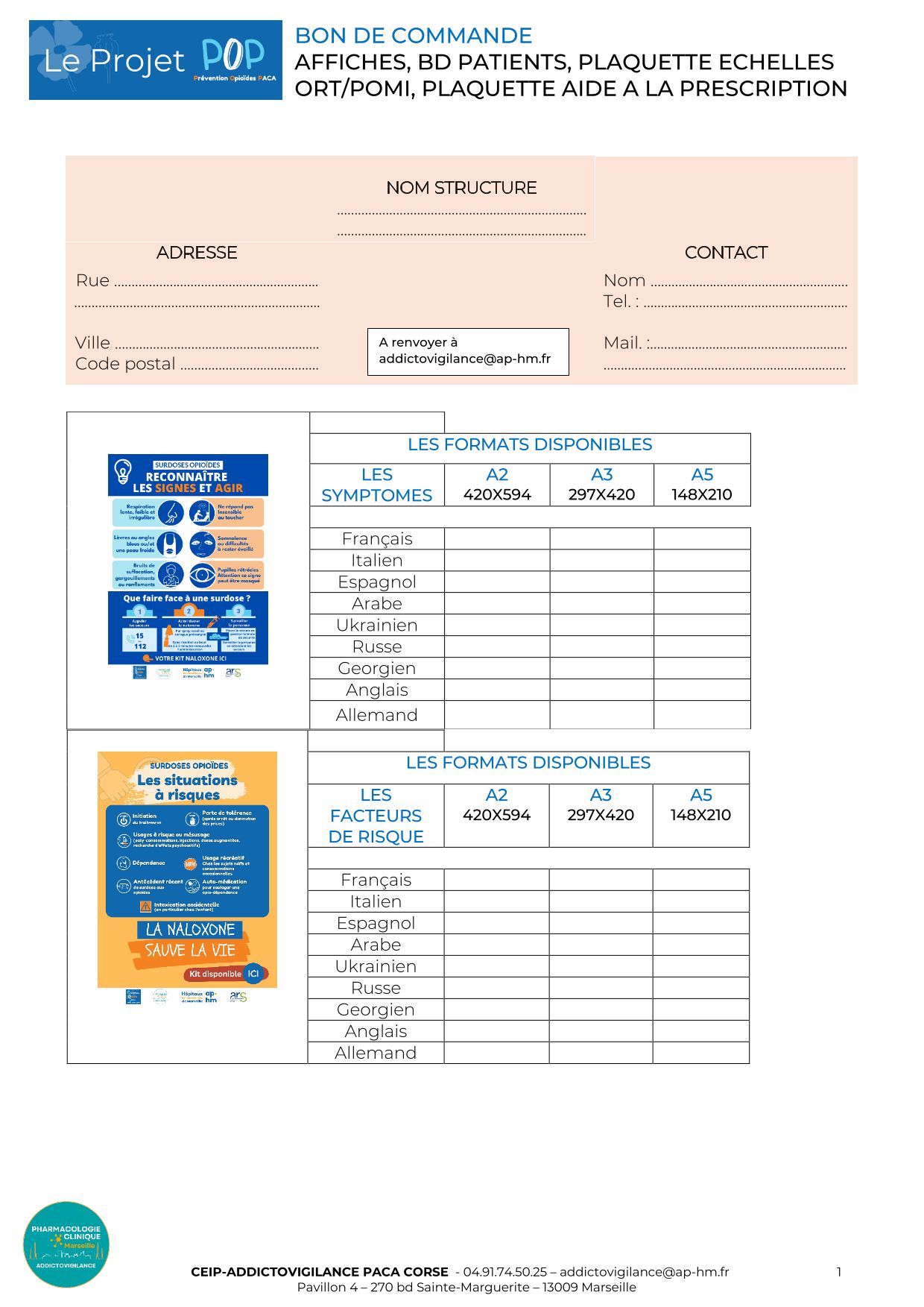 Pour commander gratuitement ces outils : télécharger le bon de commande et le retourner à addictovigilance@ap-hm.fr