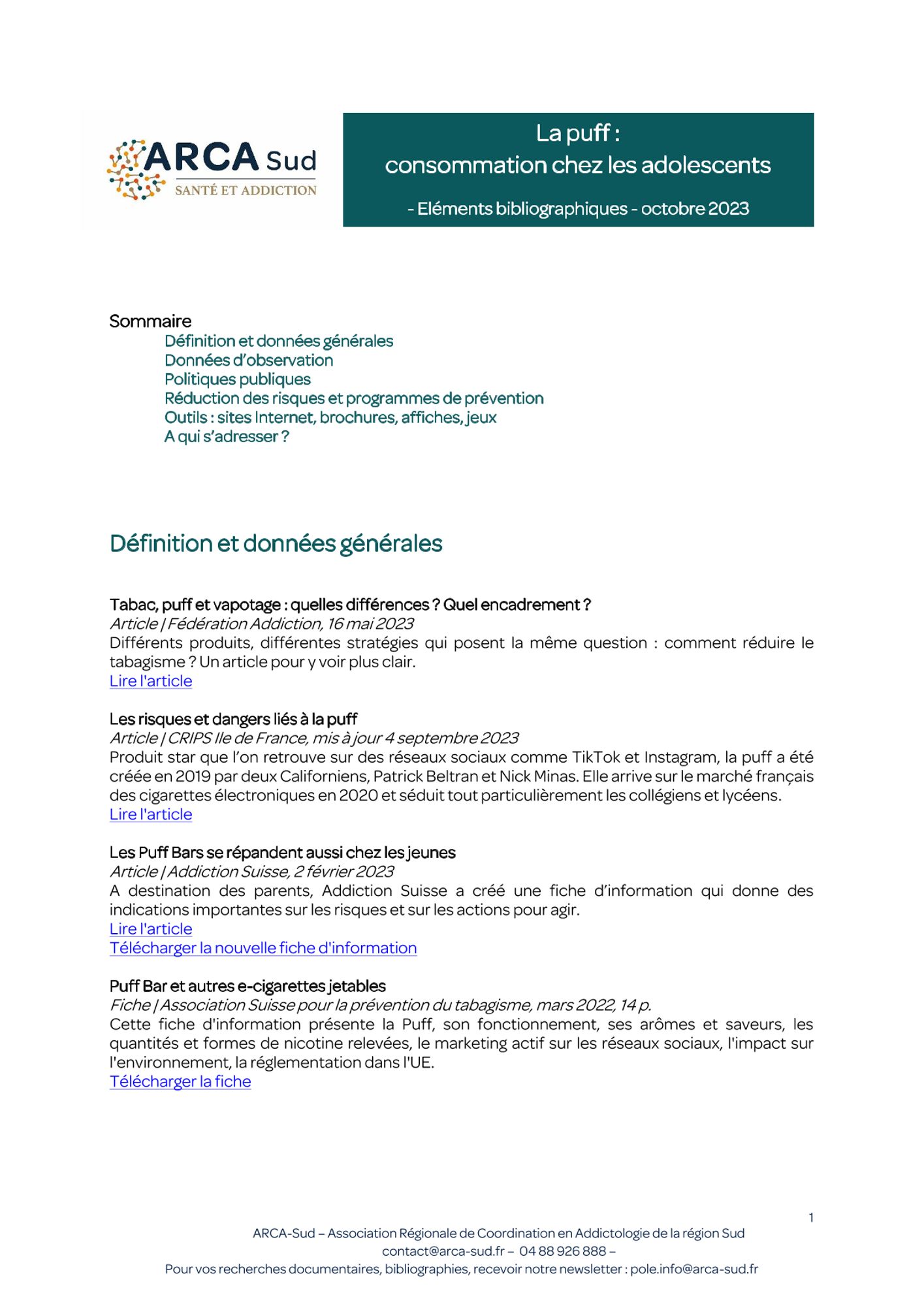 - le contenu d'une puff ;