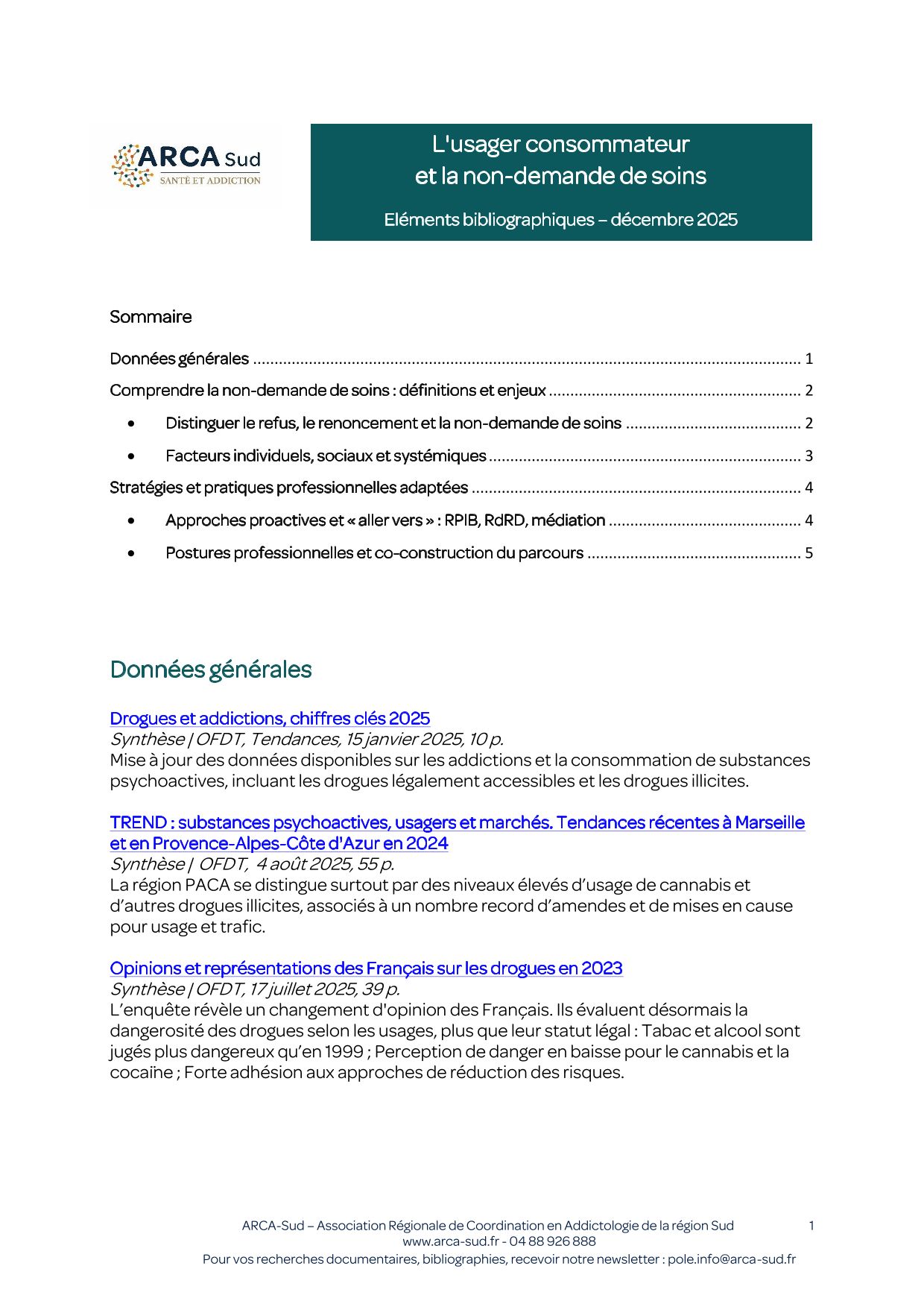 Notions de base (addiction/dépendance), définitions pour distinguer : refus de soin, renoncement, déni, non-demande ;