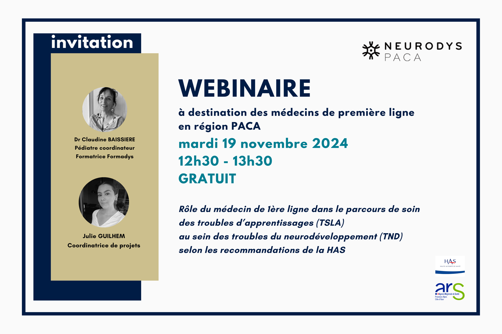 - Webinaire "Rôle du médecin de 1ère ligne dans le parcours de soin des enfants avec troubles d'apprentissages et du neurodéveloppement"