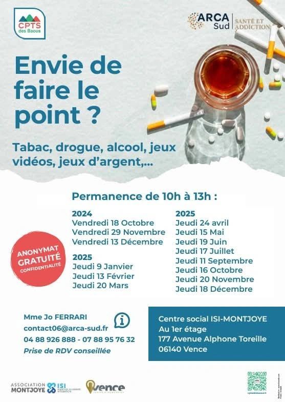 En 2025, le réseau d'addictologie ARCA-Sud renouvelle sa permanence gratuite chaque mois dans les locaux du centre social Association Montjoye.