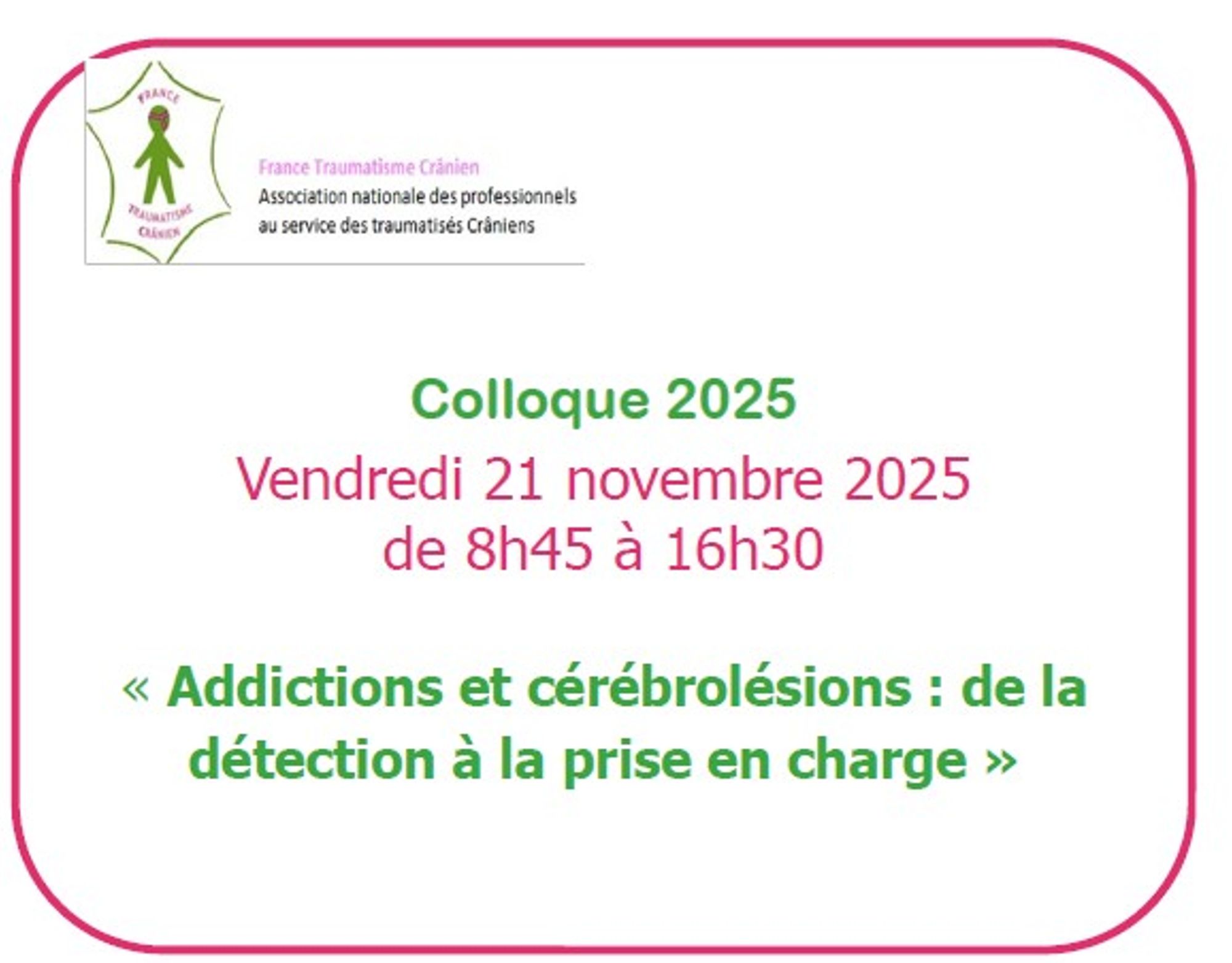 - Colloque "Addictions et cérébrolésions : de la détection à la prise en charge"