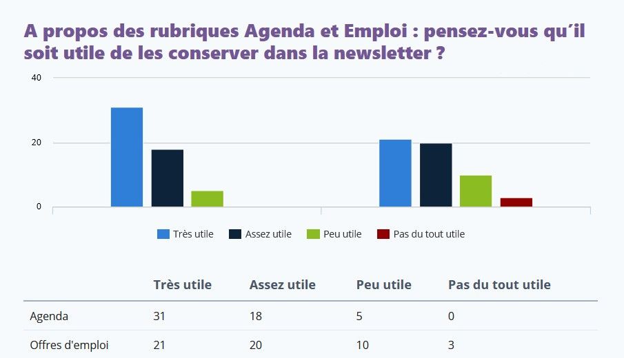 Pour continuer à l'améliorer, nous avons diffusé un questionnaire du 20 novembre au 31 décembre 2025 et obtenu 54 réponses. Que vous lisiez notre newsletter à chaque parution ou occasionnellement, nous vous remercions d'avoir envoyé vos réponses. Découvrez ici les résultats détaillés !