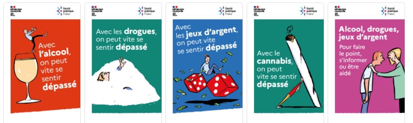 En complément, les affiches et cartes de promotion des dispositifs Alcool info service, Drogues info service, Joueurs info service et Ecoute cannabis, ont été renouvelées.