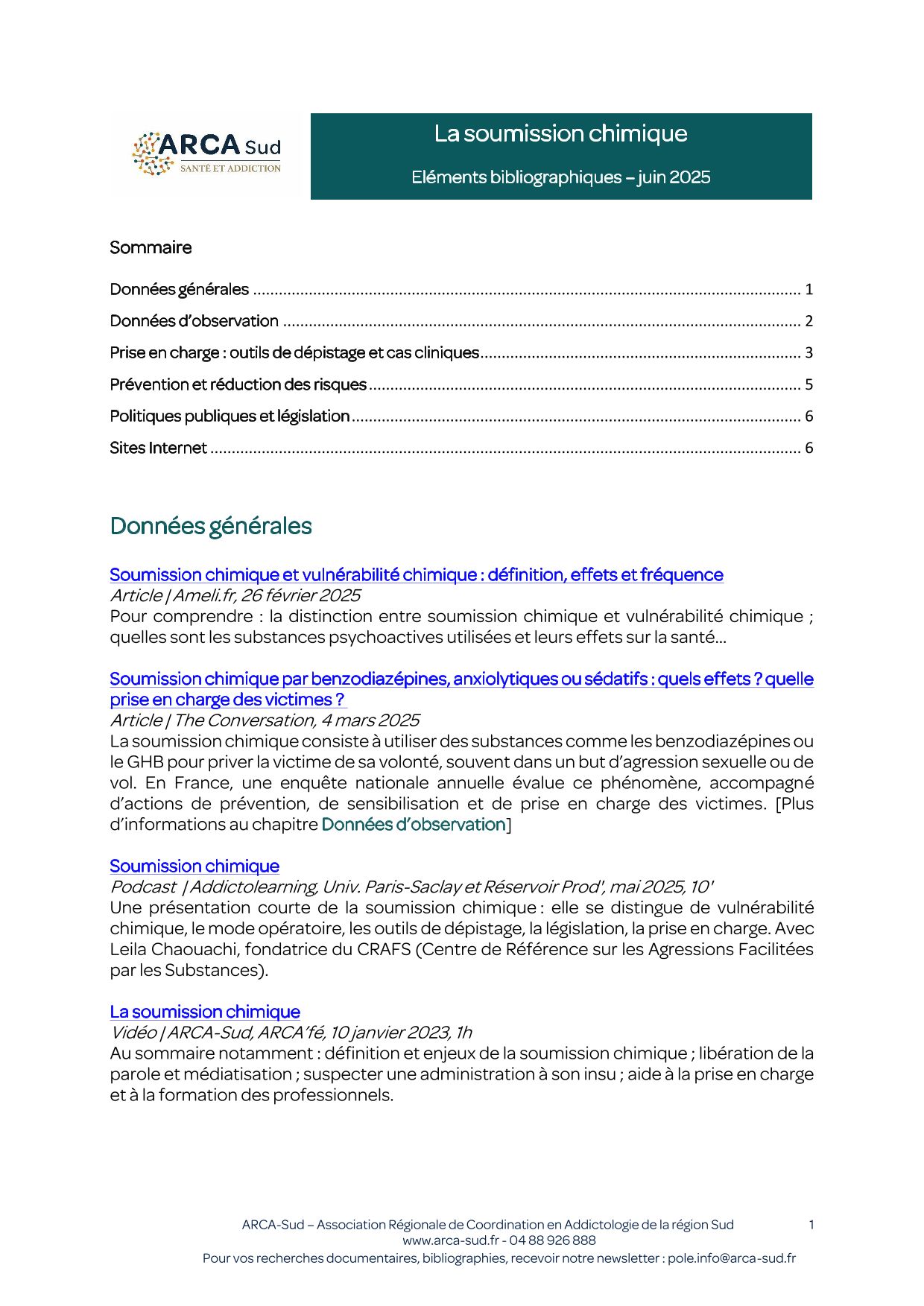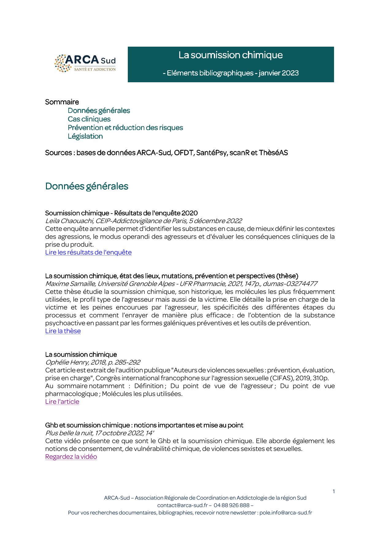 - L'enquête Soumission chimique : expertise, prévention, la finalité des données et du rapport