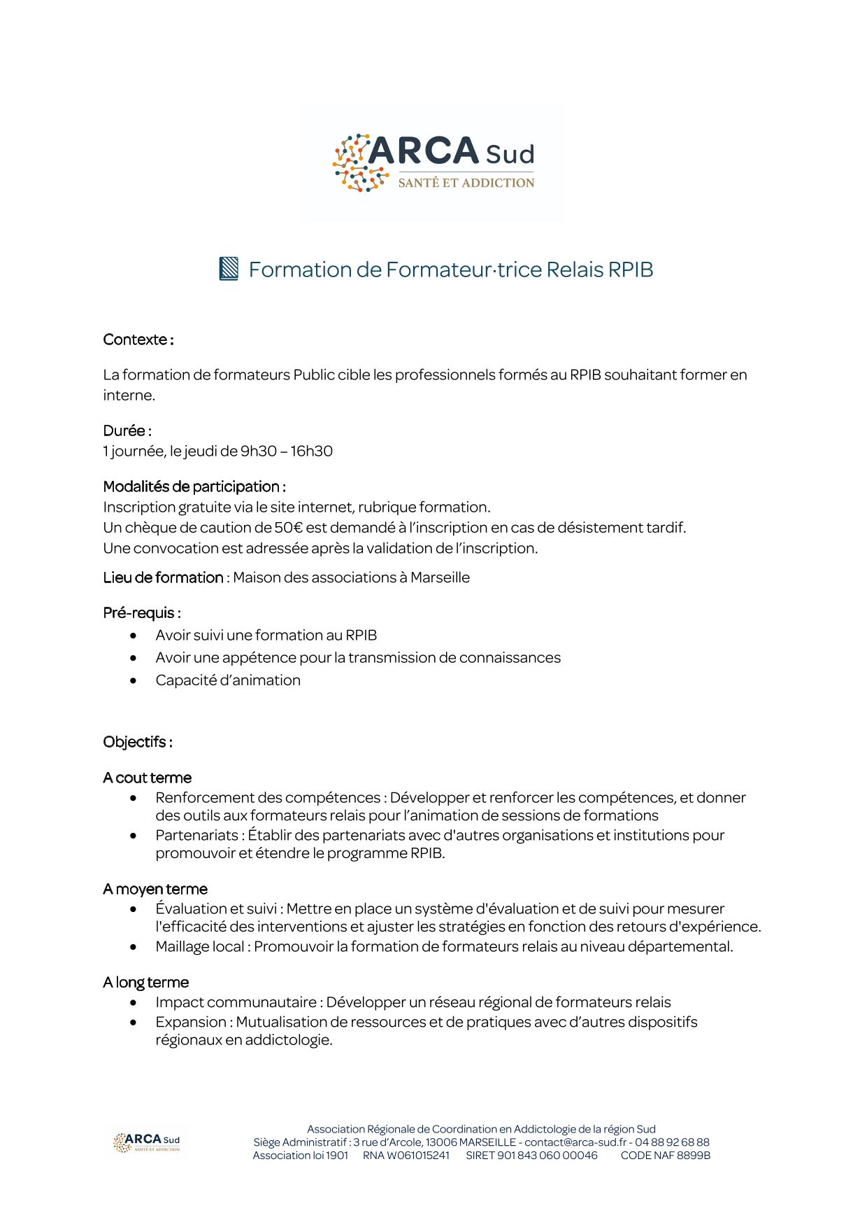 Devenez formateur.trice relais RPIB d’ARCA-Sud