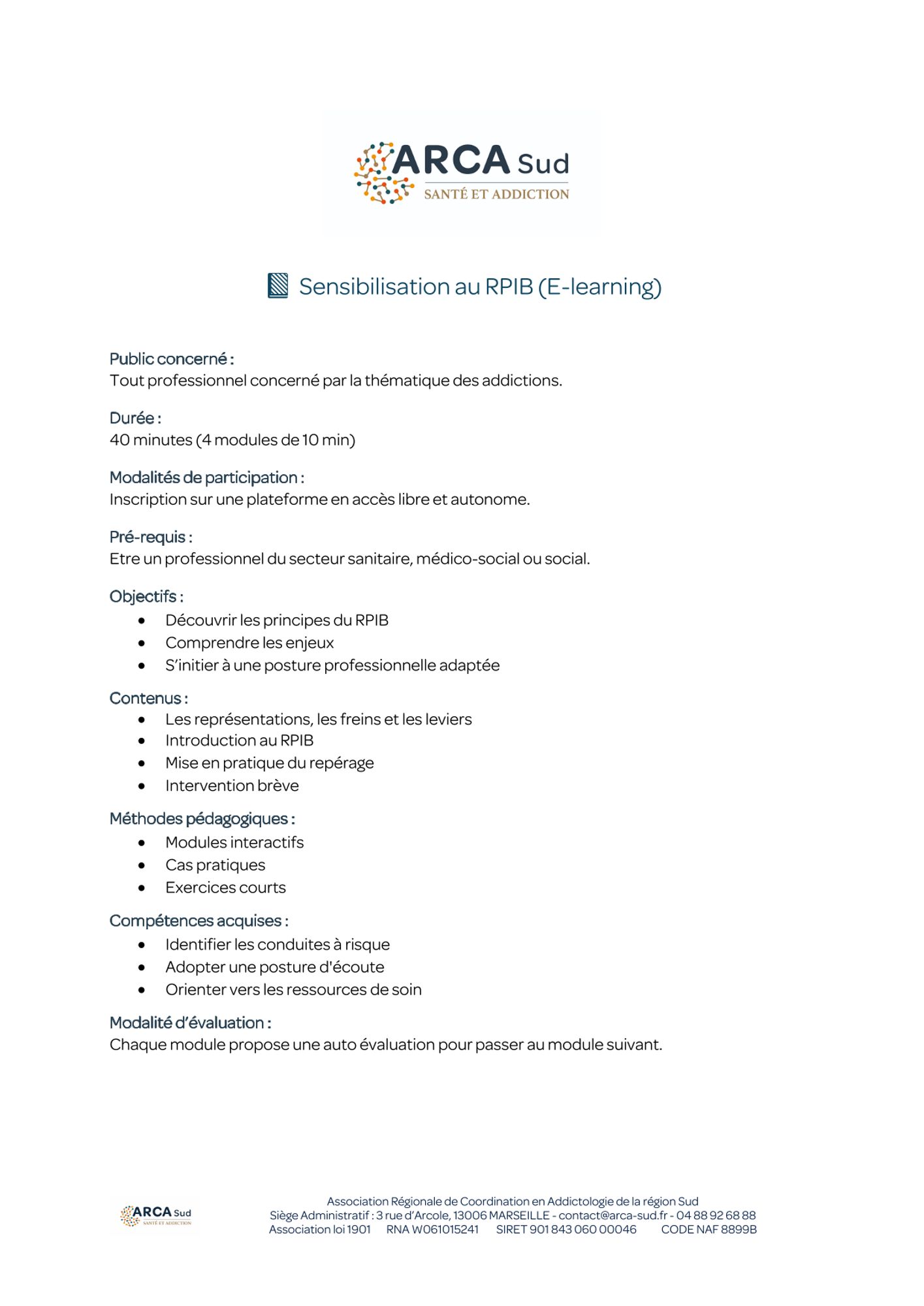 Cet outil a été développé par Grand Est Addictions, financé par l'ARS Grand Est et mis à disposition d'ARCA-Sud.